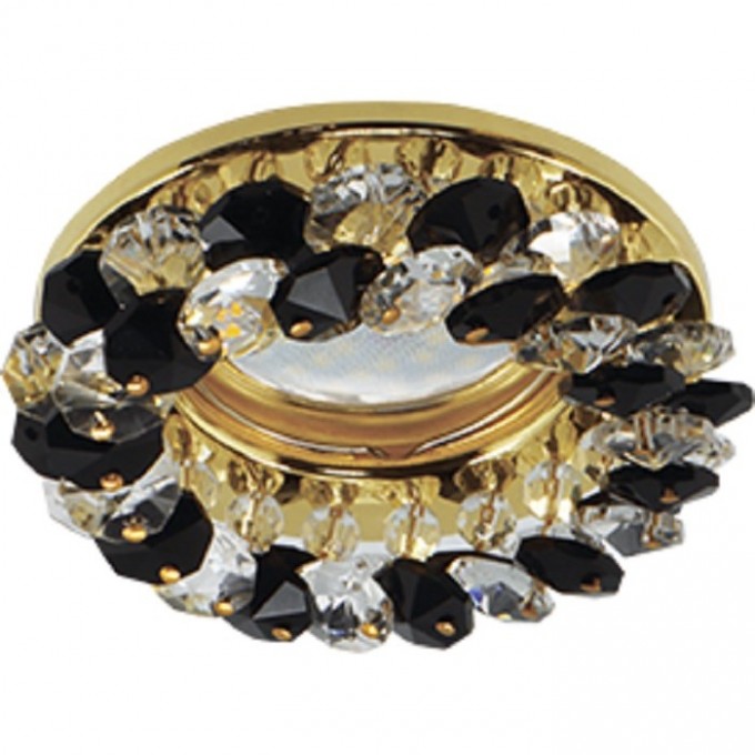 Светильник ECOLA MR16 CD4141 GU5.3 встр. круглый с хрусталиками Прозрачный и Черный/Золото 50x90 (кd74).